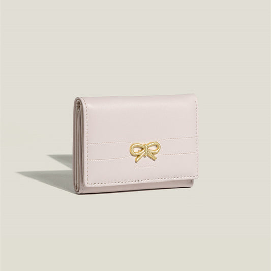 Pink Compact Women's Bow-Accent Wallet - Fresh Minimalist PU Leather Foldable Card Holder with Multiple Slots
