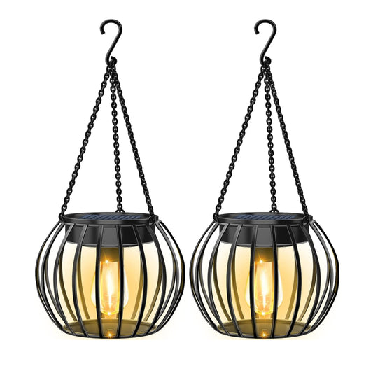 LUMIRO 2 Pack Outdoor Solar Hanging Lights Pumpkin Decorative Lantern