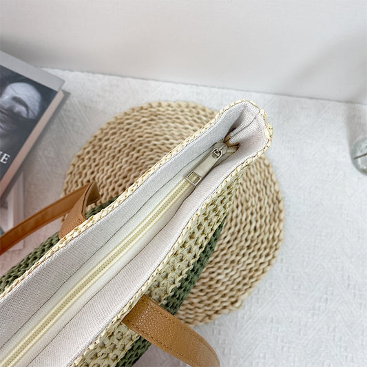 Color Mixing Eco-Friendly Woven Straw Tote Bag - Stylish 47x36x16cm Women's Shoulder Bag for Beach, Shopping & Daily Use