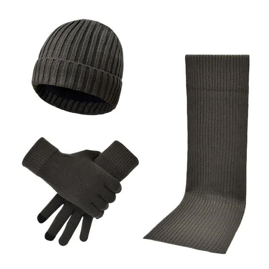 Dark Grey Men's 3-Piece Winter Warm Ribbed Knit Beanie Hat Scarf and Gloves Set