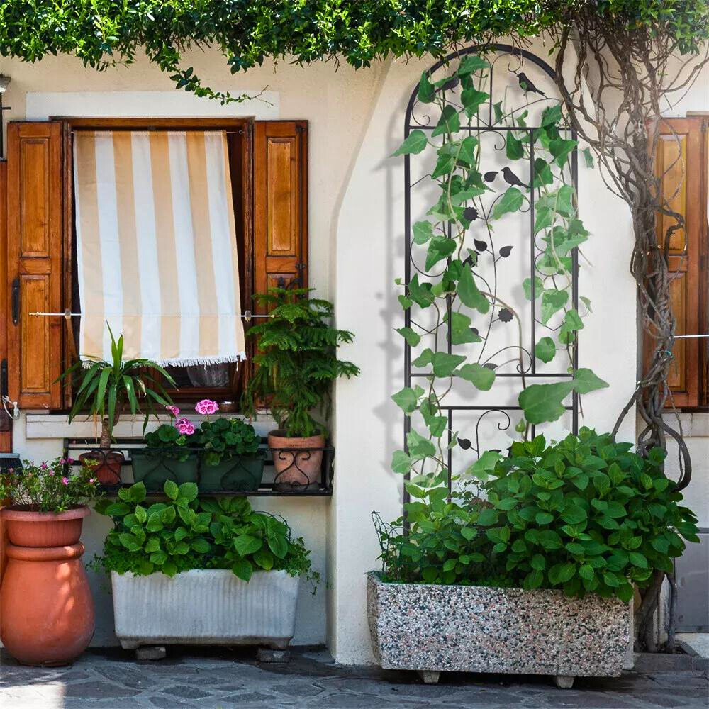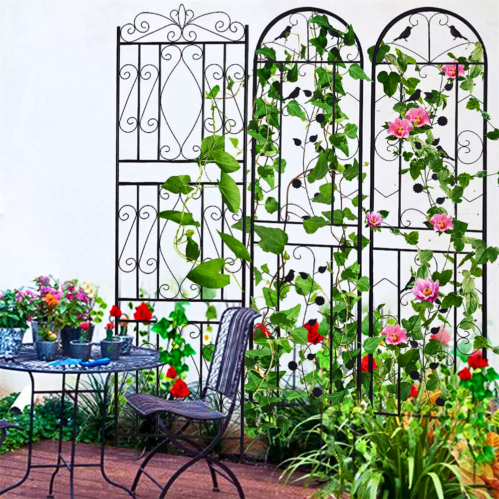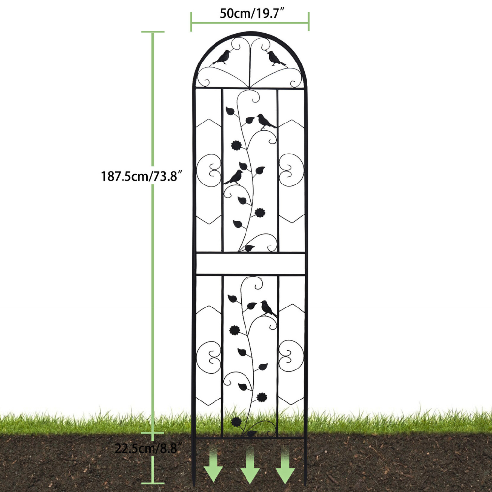 Versatile in use, these fences serve as support for tall flowers, climbing plants, or edge borders. They are ideal for gardens, backyards, patios, lawns, decks, and outdoor yards. With whimsical designs including classic scrolls, flowers, and birds, they add a modern chic charm to any space. The spiked stakes at the bottom make them easy to push into the ground, ensuring they stay securely in place. Standing 82.7 inches tall, they are perfect for holding climbing rose bushes or keeping large dogs away from plants.
