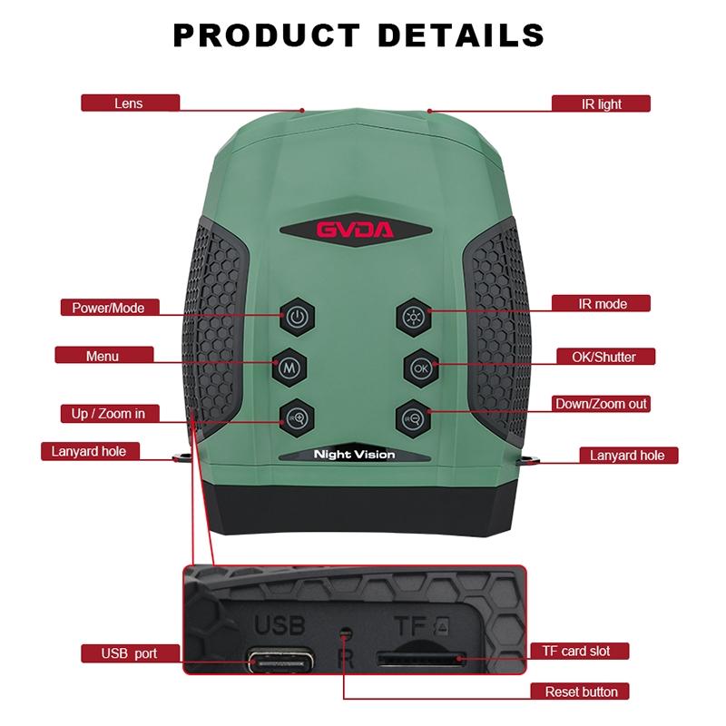 3 Tft Screen Binoculars with 4k Infrared Night Vision - Gd903 - Green