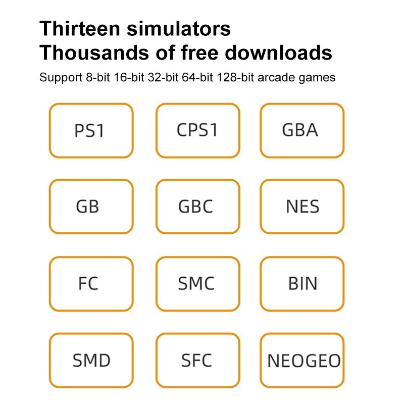 • Built-In Emulators: 13, Including Ps1, Cps1, Gba, Gb, Gbc, Nes, Fc, Smc, Bin, Smd, Sfc, Neogeo, and More