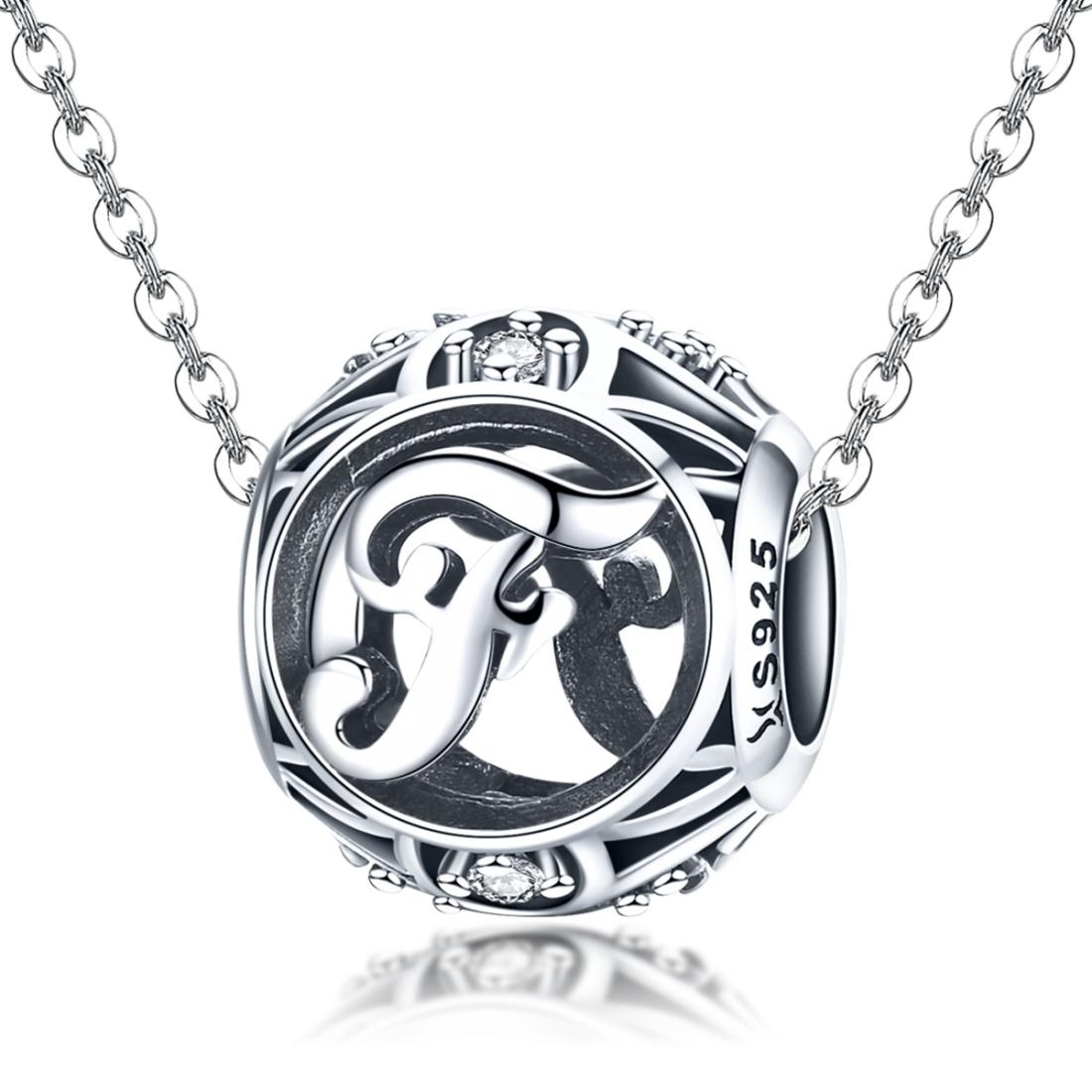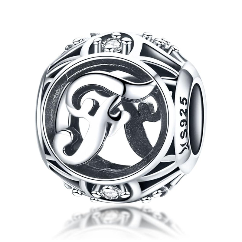 925 Sterling Silver 26 English Letter Beads For Diy Bracelets & Necklaces Style - F