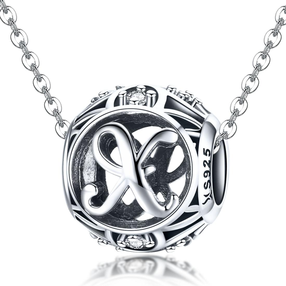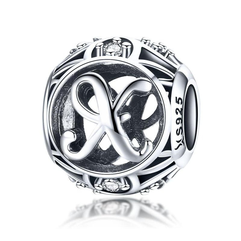 925 Sterling Silver 26 English Letter Beads For Diy Bracelets & Necklaces Style - X