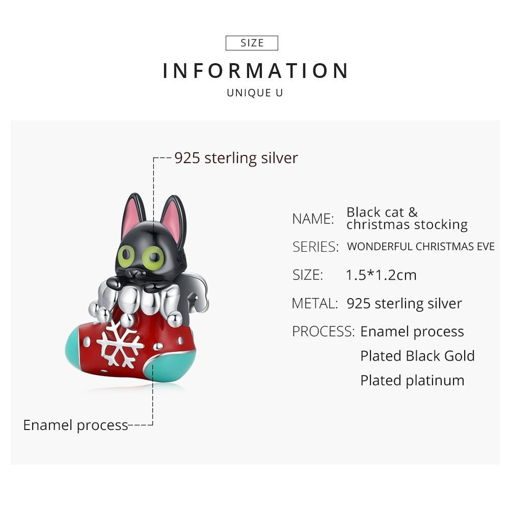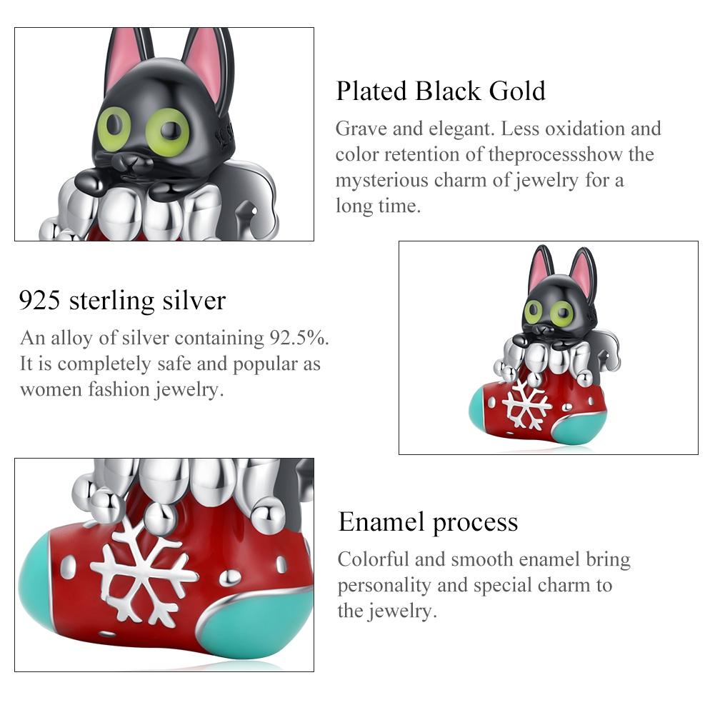 925 Sterling Silver Christmas Sock Cat Beads For Diy Bracelets & Necklaces