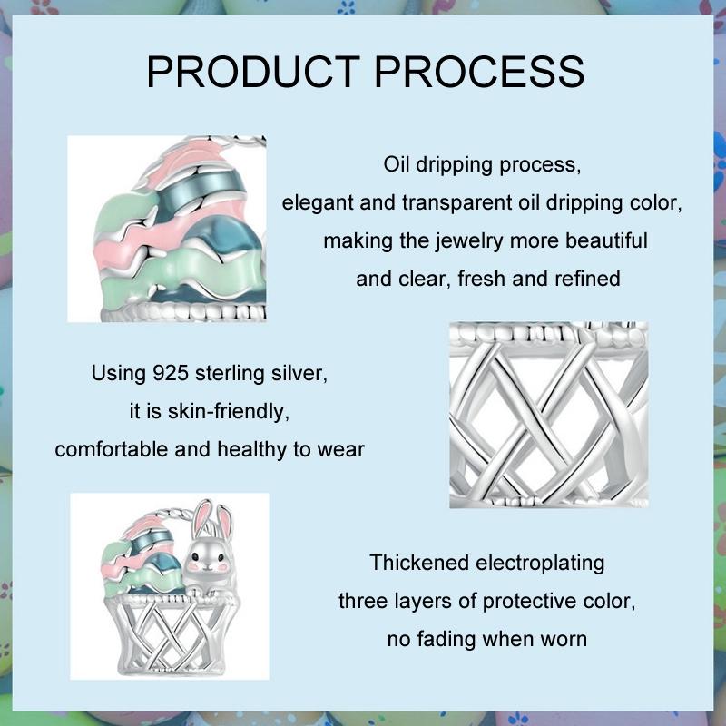 925 Sterling Silver Easter Basket Egg Rabbit Beads