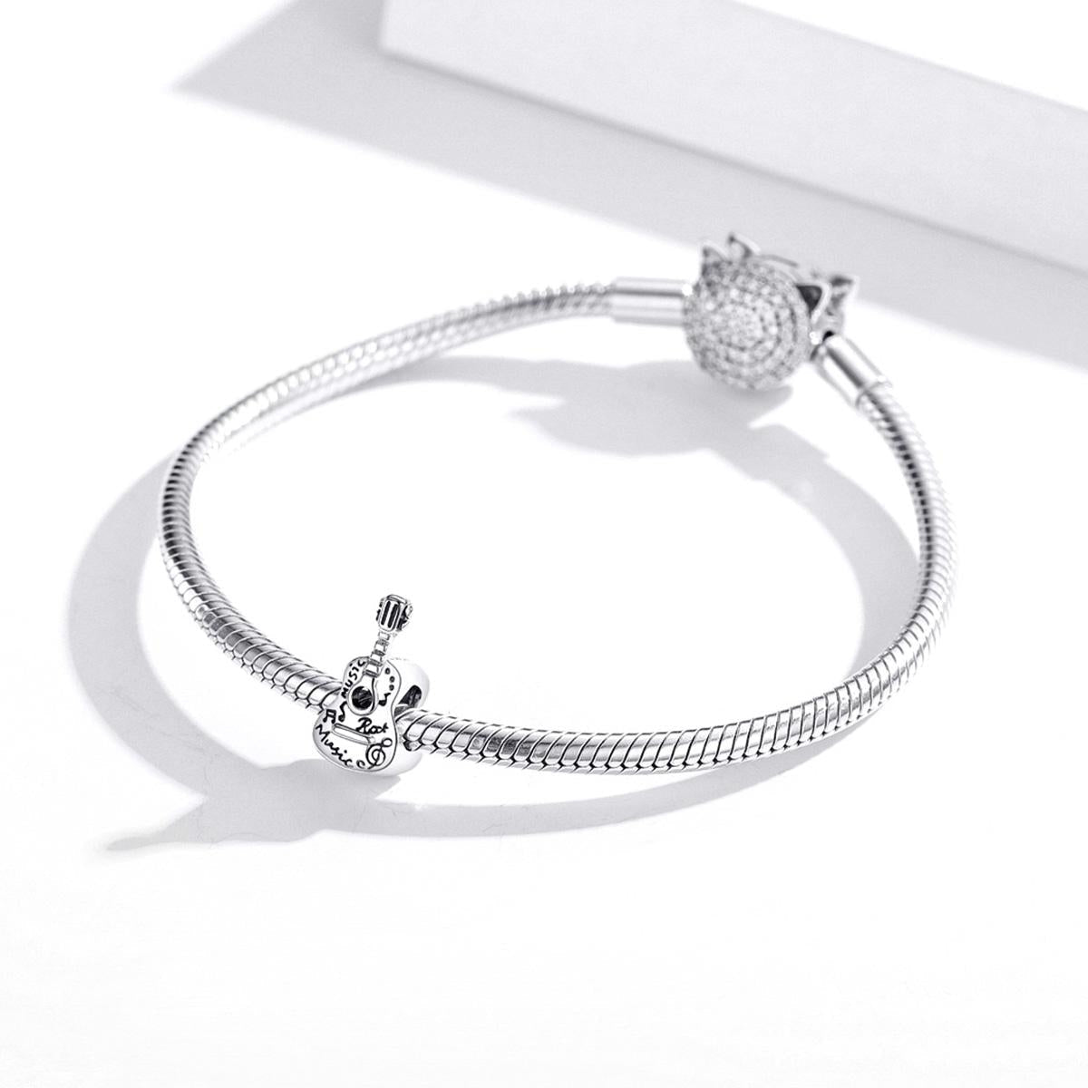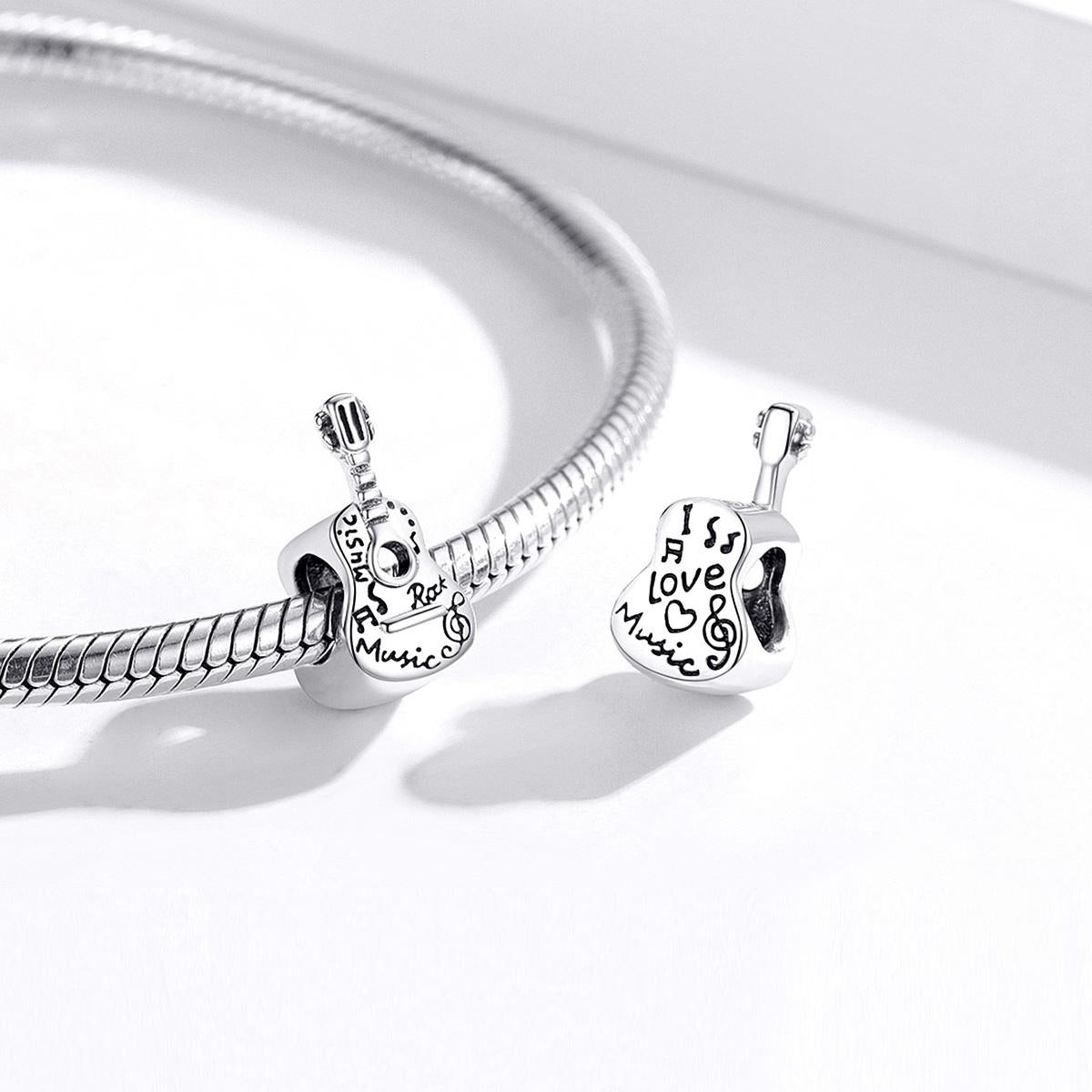 • 1 x 925 Sterling Silver Guitar Beads For Diy Bracelets Necklaces