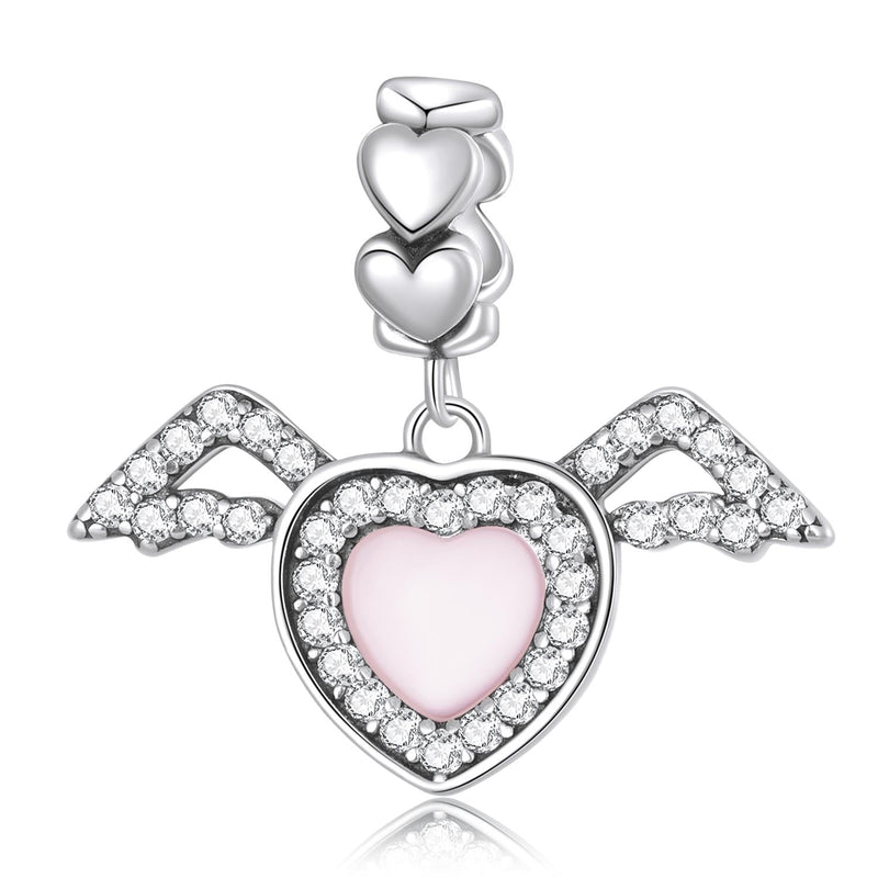 925 Sterling Silver Heart Wing Pendant For Diy Bracelets & Necklaces