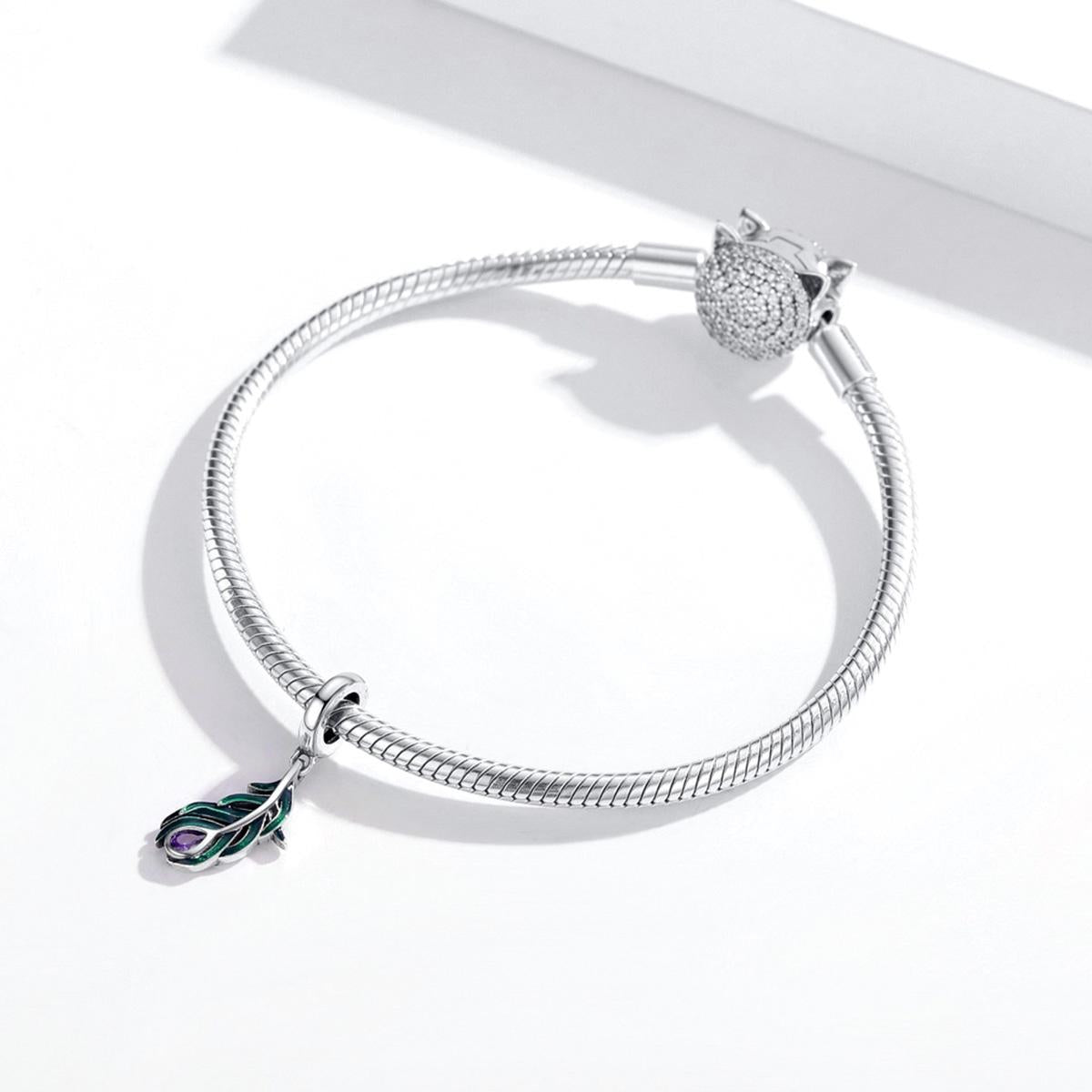 925 Sterling Silver Peacock Feather Pendant For Diy Bracelet Or Necklace