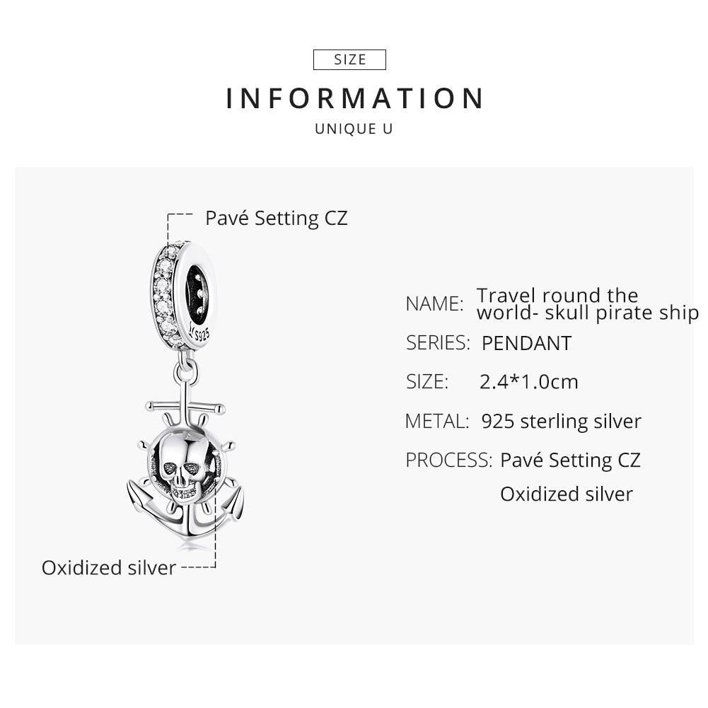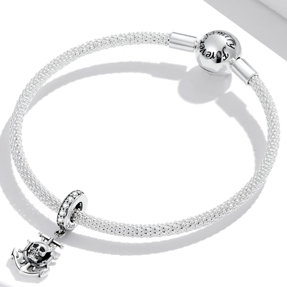 • 1 x 925 Sterling Silver Pirate Skull Pendant For Bracelet Or Necklace