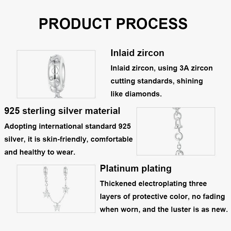 • 1 x 925 Sterling Silver Platinum Plated Butterfly Safety Chain Bracelet