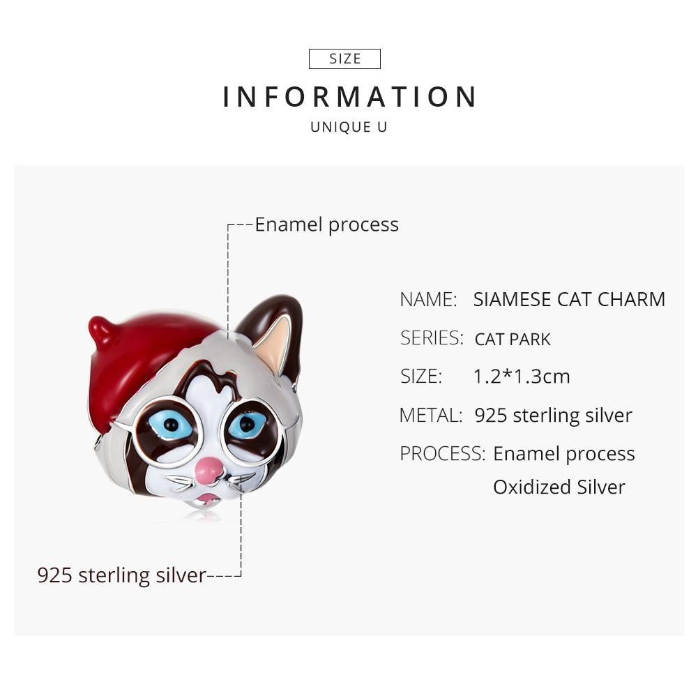 • 1 x 925 Sterling Silver Siamese Cat Bead For Diy Bracelet Or Necklace