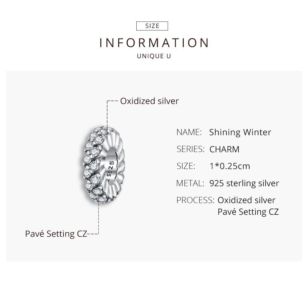 • 1 x 925 Sterling Silver Sparkling Winter Zircon Beads For Diy Bracelets Necklaces