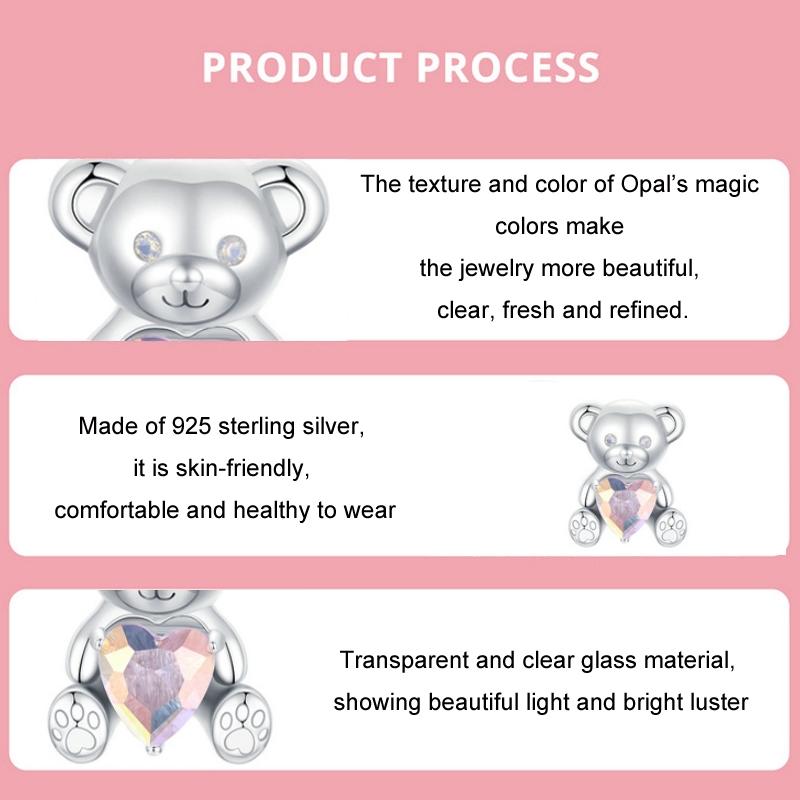 • 1 x 925 Sterling Silver Valentine'S Day Bear Beads