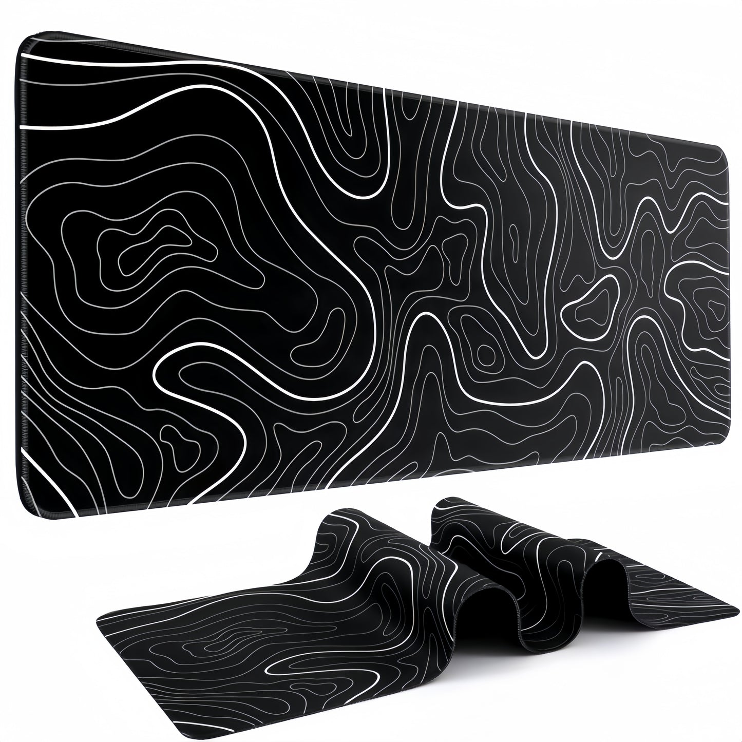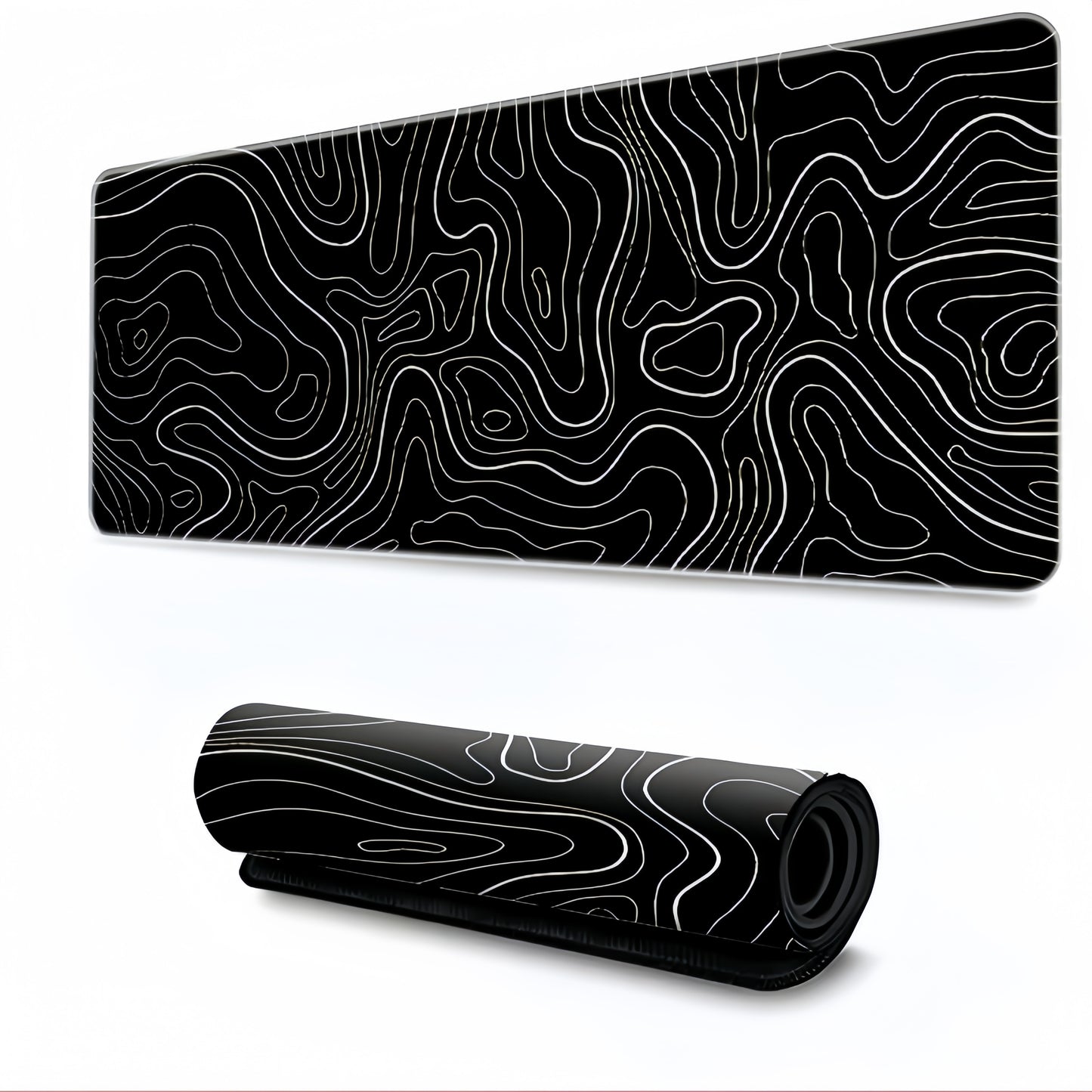 Anti-Slip Topographic Black and White Mouse Pad for Keyboard - 30x80cm