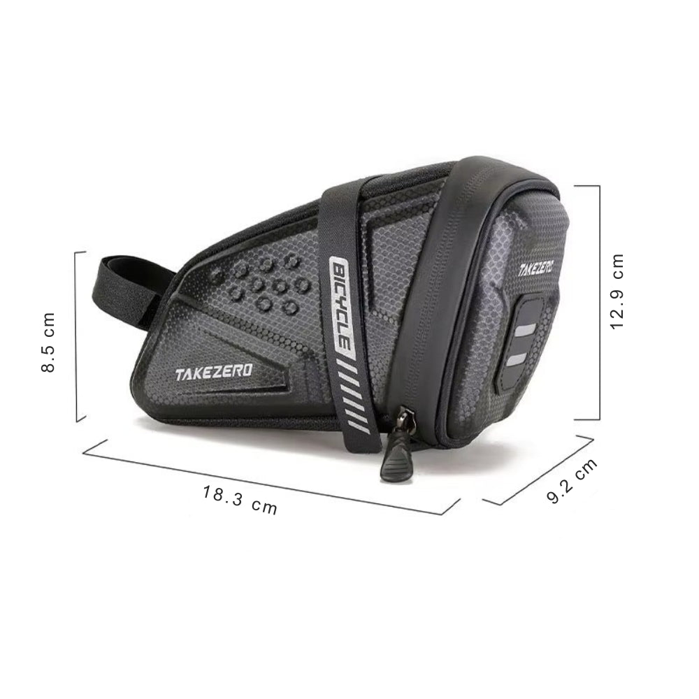 The bike saddle bag offers ample storage capacity, allowing you to conveniently carry essential items such as tools, spare tires, and air pumps. With enough room for all your on-the-go necessities, you’ll never have to leave anything behind, making your ride hassle-free and well-prepared.