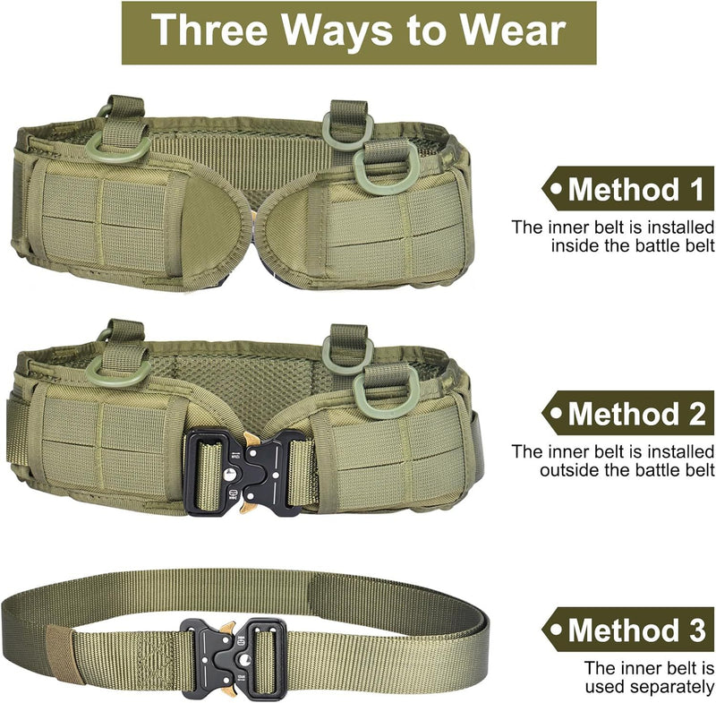- Modular 2-in-1 System: Includes a padded outer MOLLE belt (waist seal) and a sturdy inner nylon belt. Wear them together with the inner belt inside or outside the padded belt, or use the inner belt separately as a standalone duty belt.
