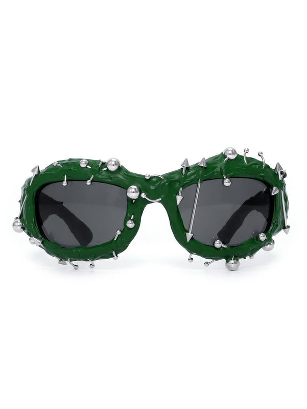 Green Edgy Punk Rock Spiked Sunglasses - Statement Goth Studded Eyewear