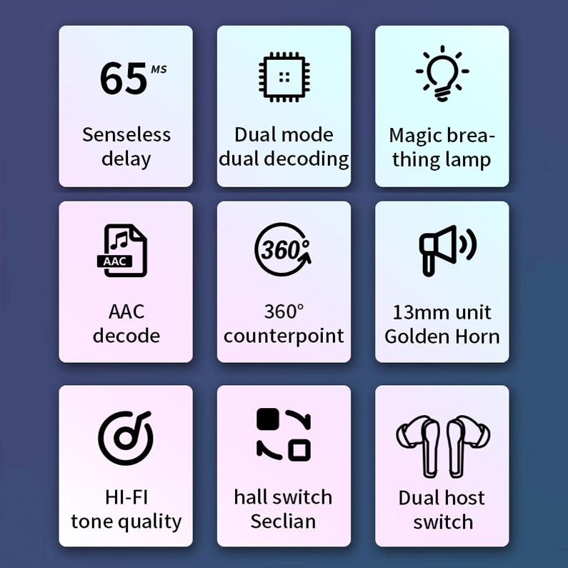 Low Latency Wireless Bluetooth Game Earphones with Colourful Lights - Non-Digital Display