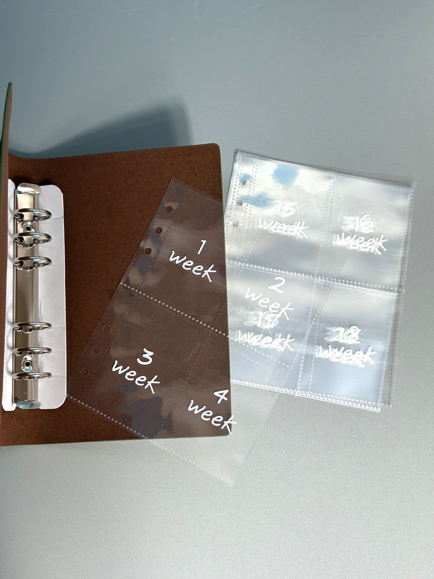 This innovative 18+35+18cm money tracking system features an expandable design with 2.3cm spine thickness, offering three distinct sections for weekly savings tracking, goal setting, and receipt storage.