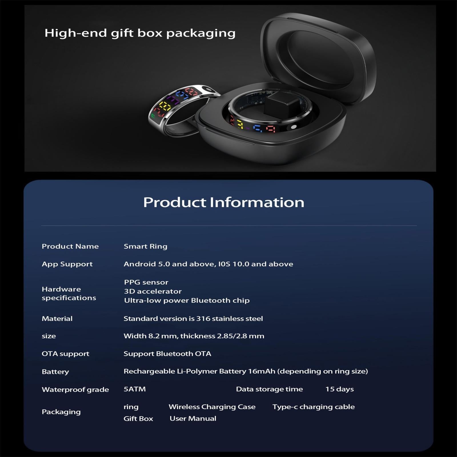 • 1 x Smart Ring Heart Rate Blood Oxygen Sleep Sports Size 12