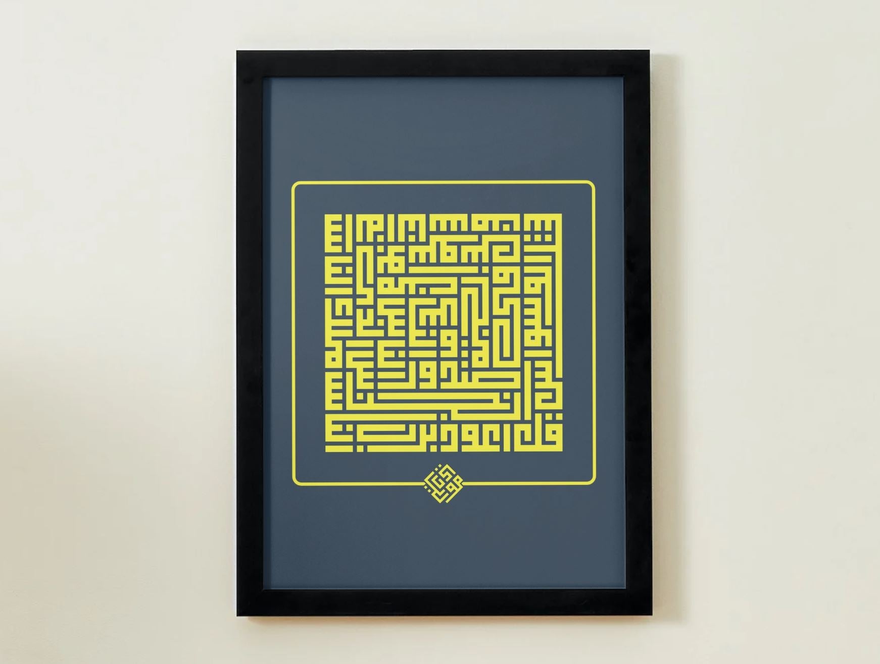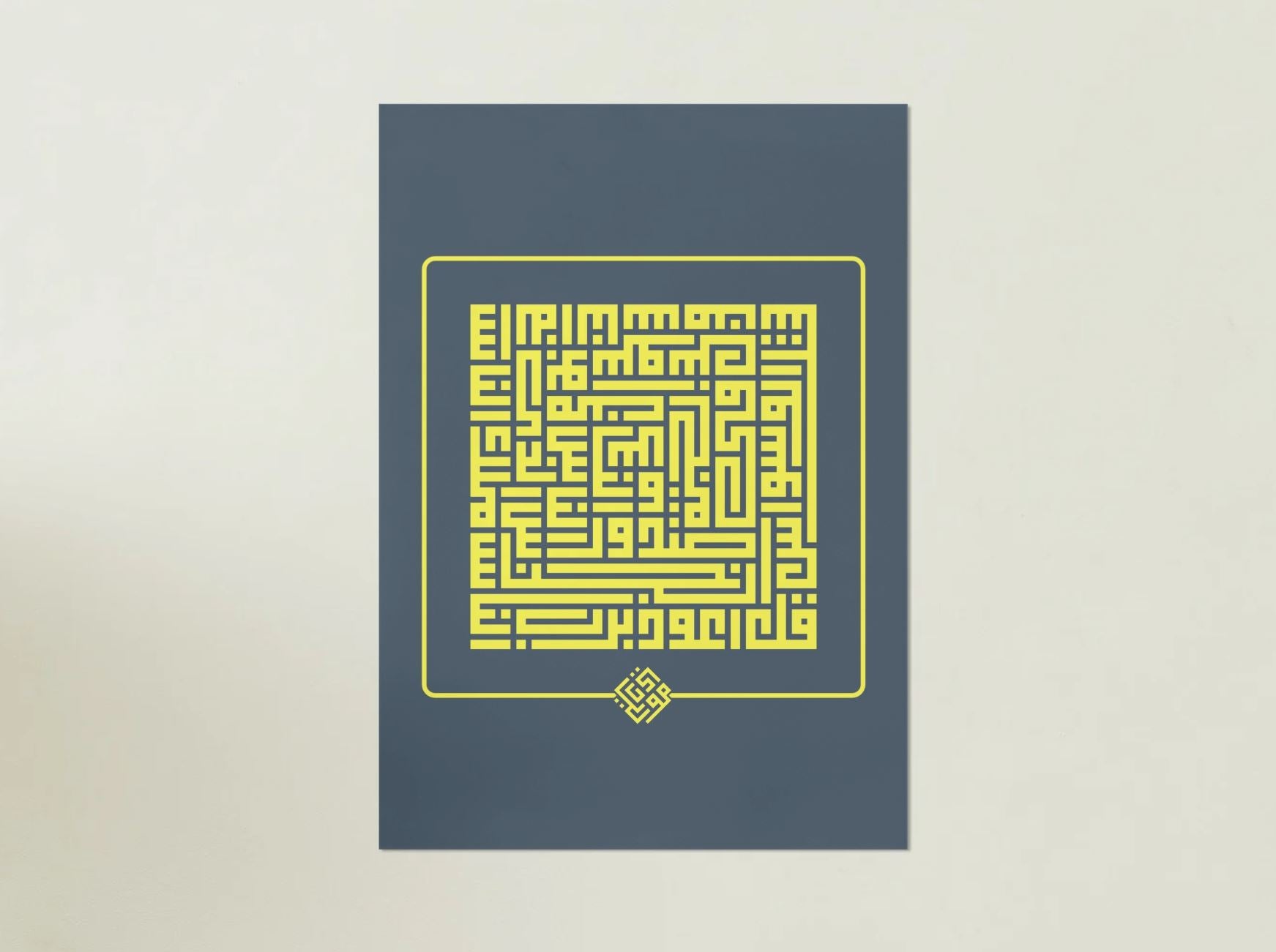 This style, known as Al-Khatt Al-Kufi Al-Murabba’ (الخط الكوفي المربع), transforms sacred verses into balanced symmetry — where every word becomes art, and every angle holds meaning.