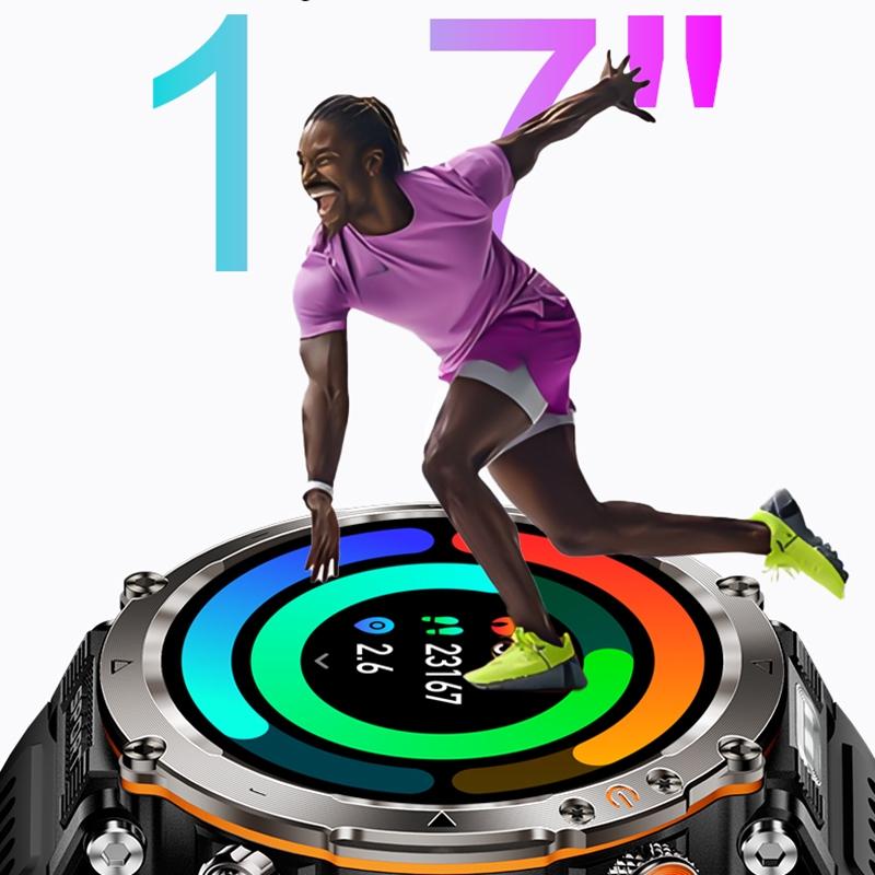 Waterproof Smart Watch With Flashlight And Compass - 1 Inch - Orange
