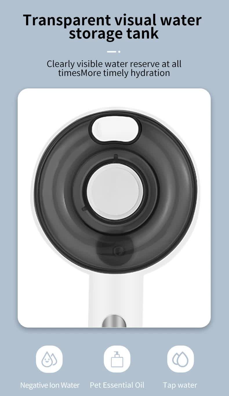 - Gentle Mist Spray Function: Features a refillable water tank (approx. 30ml) and two spray modes (light & heavy). The mist helps to slightly dampen fur, reducing static, making brushing smoother, and potentially helping with light cleaning or deodorizing.